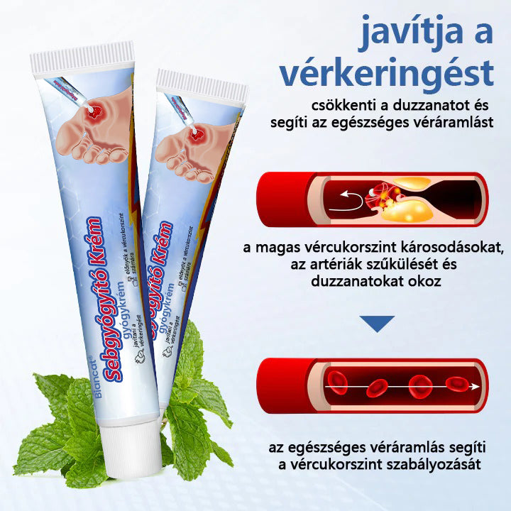 A Biancat™ Sebgyógyító Krém célja, hogy segítsen a láb egészségének megőrzésében és különféle sebek, fekélyek gyorsabb gyógyulásában. Fokozza a vérkeringést, elősegíti a sebgyógyulást, és gyengéd ápolást biztosít minden bőrtípus számára. A krém mélyen hidratál, megakadályozza a kiszáradást és a berepedezést, miközben megvédi az érzékeny bőrt a fertőzésektől. Sima, gyorsan felszívódó formulája megkönnyíti a mindennapi használatát, így hatékonyan ápolja a bőrt, függetlenül attól, hogy milyen típusú seb vagy sérülés történt.